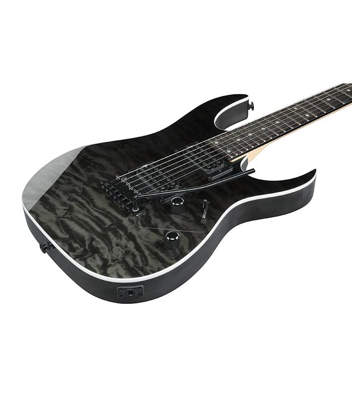 Električna gitara sa tijelom od topole sa Quilted Maple Art Grainom od lipe, GRG vratom od javora i prstohvatom od Purplehearta sa 24 Medium pragova. Prstohvat ima White Dot inlayeve. Purpleheart prstohvat naglašava ljepotu i bogati tonski karakter gitare. Pickupovi su Infinity R (H) (pasivni, keramički) na bridge i neck poziciji. Ibanez Infinity pickupi isporučuju precizan i čvrst zvuk s izvrsnom dinamikom. Čak i pod žestokim postavkama, ne gube tonsku jasnoću. Kontrole su Volume i Tone, te 5-polni prekidač za kombinaciju zavojnica pickupa. Hardware je crni, most je T102 tremolo bridge. T102 most s razmakom žica od 10,5 mm omogućuje lakše prebiranje po žicama. Mono-unit izlazni jack je izrađen od čvrstog, izdržljivog materijala i jednodijelni je kako bi se izbjeglo neželjeno pomicanje i labavljenje utičnice, što dovodi do kvara ili prekida veze. Ova inovacija omogućuje dugotrajno uživanje u sviranju i minimalno održavanje.