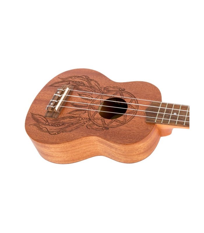FLIGHT NUS350 DC je soprano ukulele, kvalitetom i izradom sličan modelu NUS310, ali uz predivno ugraviran "dreamcatcher" motiv.