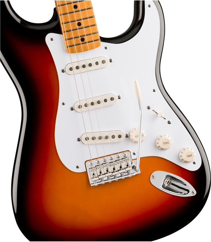 Vintera® III Late '50s Stratocaster® s ima tijelo od johe upareno s jednodijelnim vratom i prstohvatom od javora, pružajući nepogrešiv Fender zvuk.