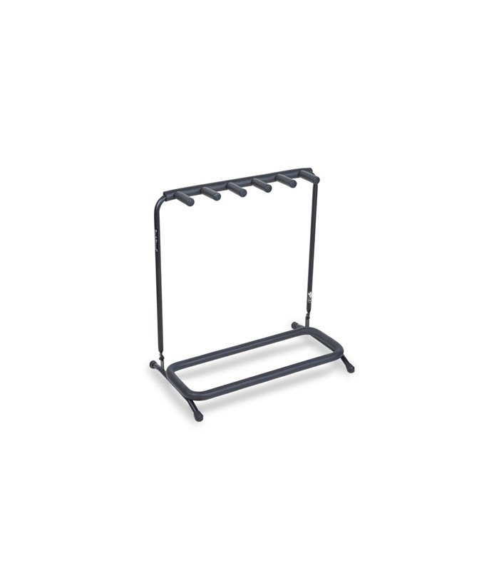RS 20871 B/2 gitarski stalak za 5 akustičnih gitara. Crni. Sklopiv za lakši transport. Mekana spužva na dijelovima koji dodiruju instrumente. Gumene nogice.